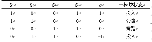 式中σσ為開關(guān)函數(shù),由各個(gè)子模塊功率器件的導(dǎo)通情況確定,如表1所示。