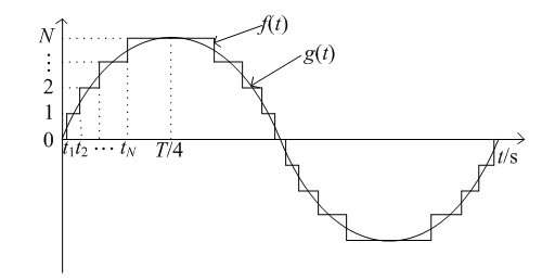 設(shè)調(diào)制波g(t)=Nsin(ωt)g(t)=Nsin⁡(ωt),則階梯波f(t)f(t)為