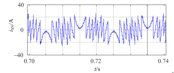 對稱性,取1/4周期分析,其余3/4周期類似??梢钥闯霎?dāng)NLM單元投入0個(gè)子模塊時(shí),4個(gè)子模塊都旁路,各子模塊維持原電流值;投入1個(gè)子模塊時(shí),投入的那1個(gè)子模塊電感電流減少,其余