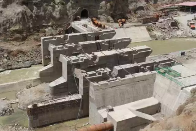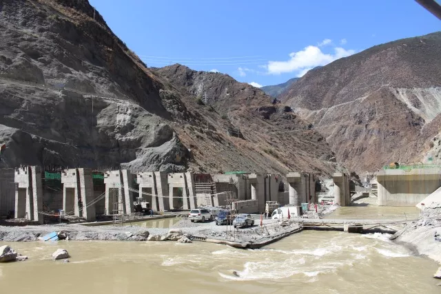 2015年1月4日,第一個(gè)枯水期施工開(kāi)始,當(dāng)年左岸導(dǎo)流明渠完成通水過(guò)流,右岸基坑開(kāi)挖完成。2015年5月11日,第一倉(cāng)混凝土開(kāi)始澆筑。2018年5月11日,首部樞紐工程最后一倉(cāng)混凝土澆筑完成。此間恰好歷時(shí)整整三年,在這三年里,三分局新藏水電站項(xiàng)目克服了交通不便、物資匱乏斷供、洪水、停電等重重困難。